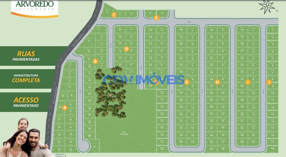 Localizado na estrada Prefeito Miguel Tito Rosa, Itapocu/Araquari, próximo à praça de pedágio da BR-101, em Araquari-SC. O loteamento tem fácil acesso por via pavimentada e está situado em uma área privilegiada, cercada pela natureza e com proximidade das praias. É o lugar ideal para momentos de lazer com a família e perfeito para os amantes da pesca. O loteamento é completamente pavimentado e conta com rede de água potável e iluminação pública. Toda a infraestrutura está em fase de implantação. Entrada a partir de R$ 6.422,92 + 240 x de R$ 912,48